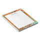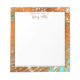 Personalised notepad with boho colours brown, orange and teal abstract art borders.