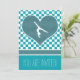 Chequered gymnastics party invitation with a teal and white design. A big teal green heart has a gymnast silhouette inside! Use the custom text fields to add your party information. Use the "customise it" button for more options (including different fonts and colours!)