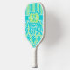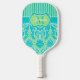 Personalised Teal, Lime Damask, Stripes Monogram Pickleball Paddle