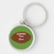 Painting of a football with a placeholder for a Team Name, is printed on custom key chains. The text is white, written across the football. The background colour is green, which can also be customised. Thank you for shopping at CherylsArt on Zazzle.