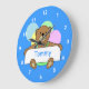 Personalised clocks for children's rooms and nurseries. Cool teddy bear design is customised with child's name.