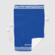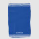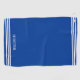 Blue three stripes and hunter text on royal blue. Text can be personalised. Elegant modern towel.