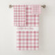 Personalised text stylish modern plaid pink tartan bath towel set for her.