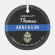 Thin Blue Line Police Department Christmas Ornament - Police Flag colours, modern black and blue design . Customise with your department logo, and personalise with police officers name, title, department logo and badge number. This personalised law enforcement ornament is perfect for police departments and law enforcement officers, stocking stuffers and christmas gifts to your police officers. Order these police ornaments bulk wholesale for the police academy or police department gifts, police christmas stocking stuffers. COPYRIGHT © 2020 Judy Burrows, Black Dog Art - All Rights Reserved. Personalised Thin Blue Line Logo Police Officer Glass Ornament