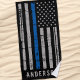 Thin Blue Line Beach Towel - American flag in Police Flag colours, distressed design . Personalise with police family or officers name. This personalised police beach towel is perfect for police and law enforcement families and all those who support them . COPYRIGHT © 2020 Judy Burrows, Black Dog Art - All Rights Reserved. Personalised Thin Blue Line Police Beach Towel