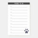 Elegant lined Post-it notes with personalised Things To Do and black paw on white background.