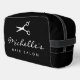 Personalised toiletry bag for hair salon stylist. Elegant black and white design with barber scissors logo. Add your own custom (business) name and colours. Printed on two sides. Perfect for tools, grooming toiletries and more.