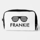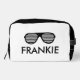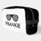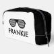 Personalised toiletry travel bag kit with cool sunglasses logo. Custom gifts for him or her. Black and white or custom colours. Great for Father's Day or Birthday.
