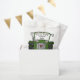 A tractor country farm wedding favour bag which can be personalised. The bunting in the tractor is in a subtle cream and white.