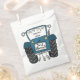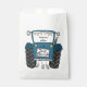 A tractor country farm wedding favour bag which can be personalised. The bunting in the tractor is in a subtle cream and white.