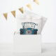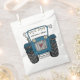 A tractor country farm wedding favour bag which can be personalised. The bunting in the tractor is in a subtle cream and white.