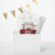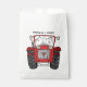 A tractor country farm wedding favour bag which can be personalised. The bunting in the tractor is in a subtle cream and white.