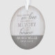 Remember your loved ones year round with this personalised memorial keepsake ornament. The treasured memory ornament features a photo on the back. The ornament reads "when someone we love becomes a memory that memory becomes a treasure". Personalise with your loved ones name and dates.