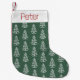 Bring timeless holiday charm to your mantel with this custom Christmas stocking! Featuring a seamless pattern of abstract line art Christmas trees in crisp white, this stocking is the perfect blend of tradition and personalisation. Add any name to create a unique keepsake for every family member — kids, adults, or even pets!