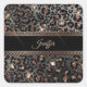 Personalised Trendy Leopard Black Gold Glitter Square Sticker