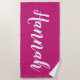 Personalise this fun, trendy script calligraphy beach towel with your name! This is the dark fuchsia version. Great for your summer vacation, bachelorette parties, kids summer camp, or spring break!