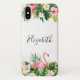 Personalised with Name, Watercolor Tropical Floral with Pink Flamingo iPhone Case