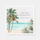 Add a tropical touch to your beach house decor with this personalised Napkins! Featuring a watercolor blue beach, palm tree, green palm leaves, and summer vibes.