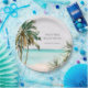 Personalised Tropical Palm Tree Leaves Blue Beach Paper Plate