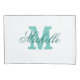 Personalised elegant aqua / turquoise blue name monogram decor pillowcase. Cute pillow case for bedroom with vintage typography initial letter and stylish script text. Classy home decor for newly weds couple, husband and wife, newlyweds, honeymooners, bride and groom, childrens room. Trendy design in customisable colours. Luxury style wedding favour gift idea. Chic monogrammed bed decoration for him and her. Add custom his and hers surname, family name, last name etc. Cute wedding, bridal shower, engagement, anniversary gift idea for men and women living together.