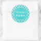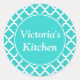 A bright turquoise pattern decorates these kitchen stickers. Customise these kitchen stickers by changing the text to suit your needs. The design is from original art.