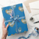 Personalised Twice Golden Hearts, French Blue Wrapping Paper