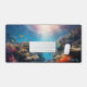 Bring the beauty of the underwater view of a colourful coral reef into your workspace with this exquisite desk mat. Personalise it with a name printed on the lower right corner. This mat features a wide view of a vibrant coral reef, schools of small fish wandering around looking for food in the crooks of the rocks and coral with a high-quality print from a high definition graphic. It provides a smooth and comfortable surface for your work for your laptop, keyboard and mouse. It can also transform your workbench with a stylish and elegant touch. Perfectly suited for all creators, artists, writers and anyone inspired.
