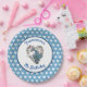 A magical unicorn with a flowing mane enveloped in a heart scattered with colourful stars. This paper plate is perfect for all unicorn lovers.