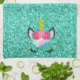 Personalised Unicorn Teal Glitter Kitchen Towel