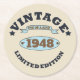 Personalised vintage 75th birthday party round paper coaster