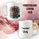 Personalised coffee cup. Pile of old antique books, a cup of coffee and flowers in red and blue. These graphics will give you vintage vibes. Great gift for a book lover.