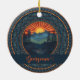 Add timeless beauty to your space with our Personalised Vintage Wilderness Sunset Dot Mandala Ceramic Ornament. This elegant ornament showcases a tranquil wilderness scene with a radiant sunset glowing behind majestic mountains and silhouetted pine trees. The sun’s warm rays, in hues of yellows, oranges, and reds, contrast beautifully with the deep blues and greens of the natural landscape. Encircling the central design are intricate dot mandalas and floral-inspired motifs arranged in a symmetrical, art deco-inspired pattern. This rich, earthy colour palette evokes rustic charm and nature-inspired tranquillity. Crafted from high-quality ceramic, this ornament can be personalised with a name, creating a truly unique keepsake or gift that combines ornamental detail with meaningful personalisation.