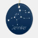 Personalised Virgo Zodiac Constellation Ornament. Featuring Virgo's Constellation on a Navy Background, this Personalised Virgo Ornament Makes a Perfect Addition to Your Christmas Tree. Virgo is the Sixth Sign of the Zodiac and Includes all Individuals Born from August 23rd - September 22nd. Virgo's Symbol is The Virgin. Virgo's Personality Traits are Creative, Modest, Practical, Perfectionist and Reliable. Virgo's Birthstone is the Sapphire and Virgo's Ruling Planet is the Mercury. Background Colour and Text can be Customised