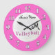 Personalised Volleyball Clock with her NAME and MONOGRAM or Jersey NUMBER typed into the Two Text Boxes found under the "Personalise it" area. Hot Pink Volleyball Bedroom Decor for Girls and Women who love volleyball. You can DELETE any text you wish to leave it blank.
