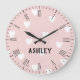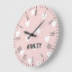 White hearts patter on pink background with roman numeral clock face and customisable text
