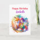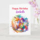 Pretty watercolor ai art on a personalised birthday card for a little girl. A fox with an anime girl in pink, green, blue and orange. Inside is a colouring page. You can edit all the text on this card.