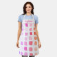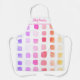 This apron is decorated with a pattern of samples of watercolors in purple, pink and yellow.
