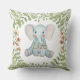 Personalise watercolor elephant greenery nursery throw pillow.