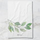 This unique personalised kitchen towel is decorated with watercolor greenery and stylish script typography.