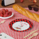 A cute watercolor of a Ladybug cake on a wood cake stand as a birthday party plate! This comes with coordinating party supplies.