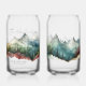 Personalised watercolor mountain beer can glass