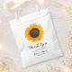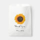 Custom fall themed wedding favour bags. This design features a beautiful watercolor sunflower and elegant script font. Easily personalise with the bride and groom names for unique favour gifts for your guests.