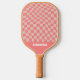 This cool pickleball paddle features a wavy retro chequerboard pattern in coral with a place to personalise your paddle with your name! Additional colour variations are available in our Zazzle shop, or message us for additional customisation!