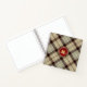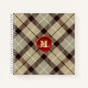 Elegant, modern and trendy customisable notebook features "personalised name & monogram" on a red wax seal and Burlywood / Battleship grey plaid tartan background.