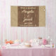 Personalised wedding banner featuring rustic burlap and wood fence or woodgrain look. You can personalise the bride and groom name, wedding date, and verse. All of the wording can be personalised and customised in the customise it tool. You can also move everything around to fit your wording better and change their sizes. Great for a country or western wedding.