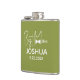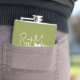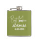 Personalised Wedding flask best man gift that can be personalised with the best man's name as well as date of wedding. The green flask has an elegant, modern script design with a bow tie graphic. A great gift for groom to give his best man.