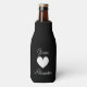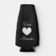 Personalised wedding can cooler for groomsman. Custom classy black and white wedding bottle holders with cute heart. Classy design with name or monogram letters. Romantic love symbol design. Make one for with for team groom, groomsmen, best man, ring bearer etc. Create your own cosy wedding favour / souvenir for guests at your party. Romantic theme beverage holder design. Perfect for alcoholic drinks like beer. Also available for cans. Elegant script typography. Custom background colour. Custom double sided cosy cooler for chic wedding, fancy bridal party, funny bachelor party etc.