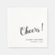 Celebrate your special day with personalised wedding cocktail napkins with names! These stylish napkins are perfect for your wedding, bridal shower, engagement party, or anniversary. Featuring a modern cheers calligraphy design in black on a white background, these napkins are both elegant and fun.