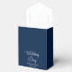 Personalised Personalised Wedding Day Elegant Navy Blue Gable Favour Box with a white bow and beautiful calligraphy . Best wedding party favour box ever. Add Bride and grooms name and date of wedding. Add your favourite favour for a one of a kind gift.