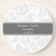 This round shaped drink sandstone coaster has a grey and white paisley pattern with a place for your to add the names of the bride and groom along with the date of nuptuals.